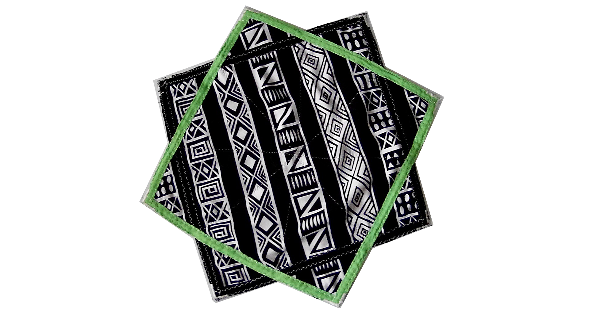 - Side2: Commercial Print with black stripes and patterned white stripes